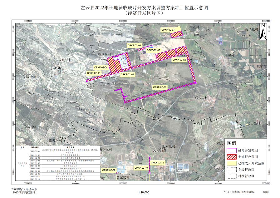 2022年5月22日,大同市人民政府批復《左云縣2022年土地征收成片開發方案》,批復地塊總面積184.5177公頃,擬征收地塊面積163.4651公頃。實施比例75.24%,剩余39.6526公頃。