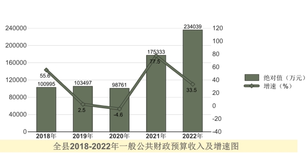 全年全縣一般公共預算收入23.4億元,同比增長33.5%。一般公共預算支出27.6億元,同比增長15.9%。