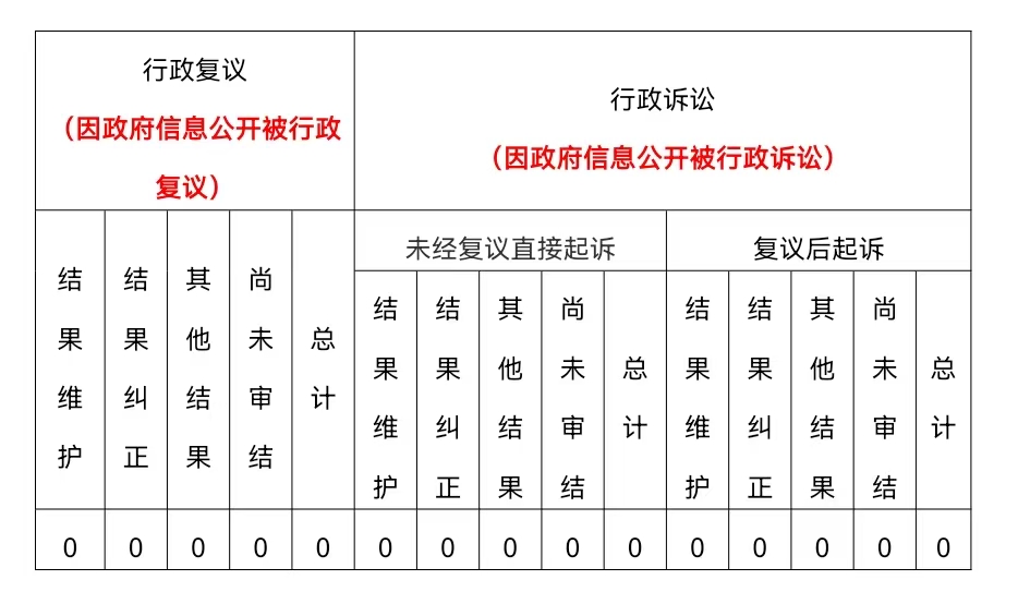 2024年收到政府信息公開申請0件,處理政府信息公開申請0件,全年信息公開類行政復議0件,訴訟0件。