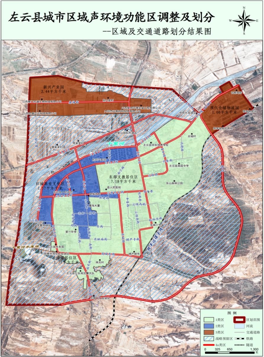 附圖:左云縣城市區(qū)域聲環(huán)境功能區(qū)調整及劃分結果圖