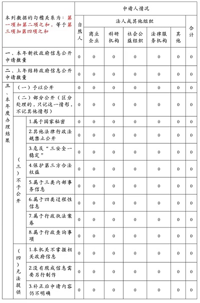 三、收到和處理政府信息公開申請情況